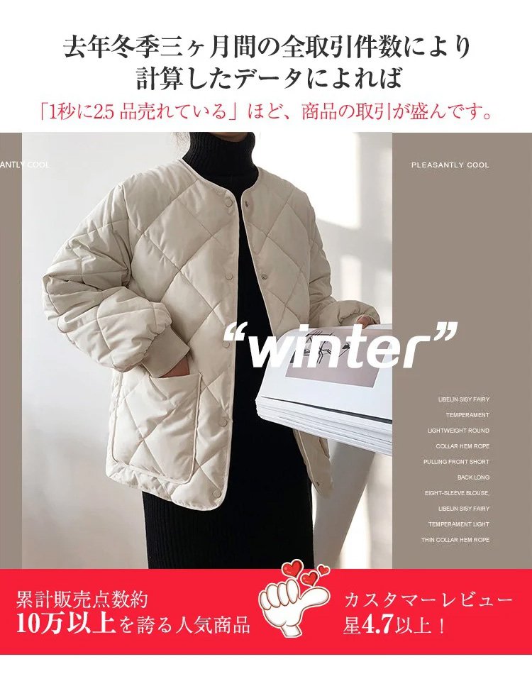 ノーカラー中綿ジャケット